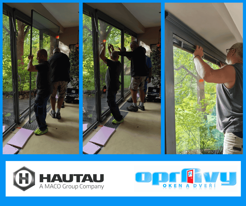 Oprava hliníkových posuvných dveří s kováním Hautau Atrium – zakázka, která vyžadovala zkušenosti i přípravu
